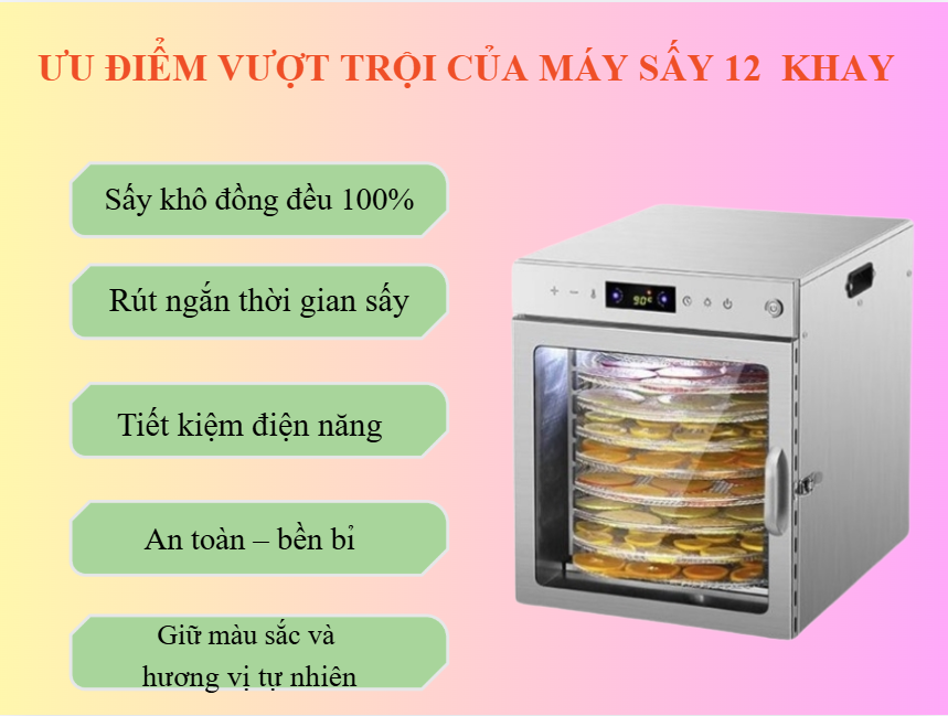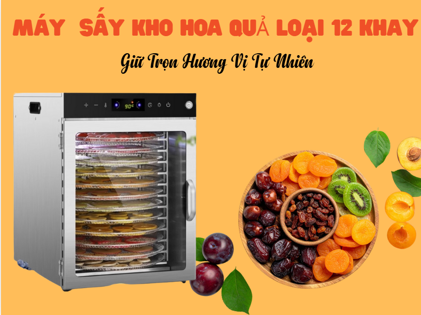 Máy sấy hoa quả loại 12 khay xoay – Giải pháp sấy thực phẩm năng suất cao, tiết kiệm điện