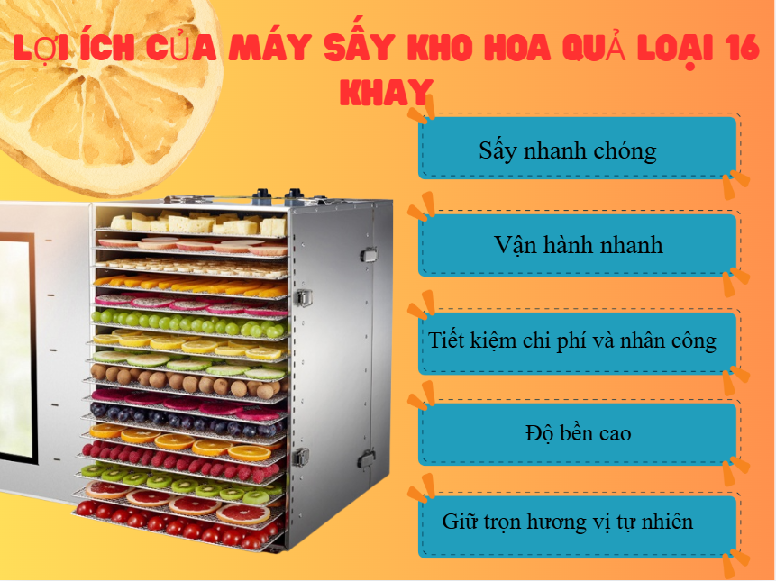 Máy sấy hoa quả 16 khay xoay