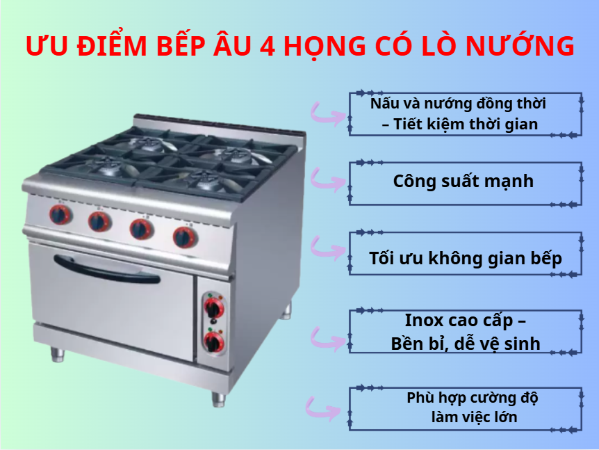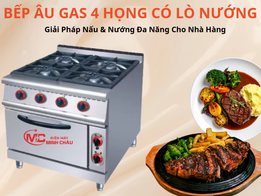 Bếp Âu Gas 4 Họng Có Lò Nướng – Giải Pháp Nấu Nướng Đa Năng Cho Nhà Hàng