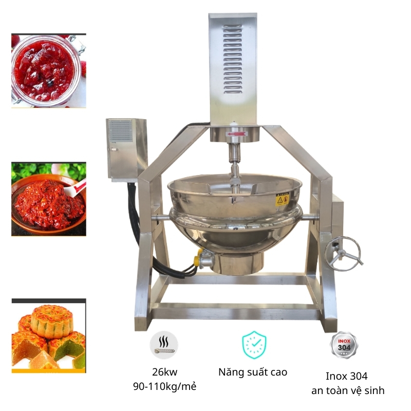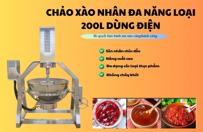 Chảo sên nhân 200L dùng điện cánh khuấy lệch tâm ra đời để giải quyết đúng bài toán đó: