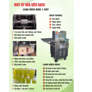 Máy ép mía 1 cây nửa bàn chính là dòng máy “vừa tầm” dành cho người mới khởi nghiệp hoặc quán quy mô nhỏ – trung bình.