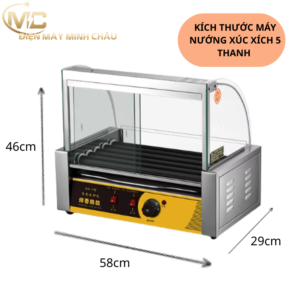 - Máy nướng xúc xích 5 thanh có thiết kế khá nhỏ gọn với kích thước chỉ khoảng 58*29*46cm. Bạn có thể đặt máy ở bất kì vị trí nào thuận tiện cho công việc chế biến, máy đều không làm tốn nhiều không gian diện tích.