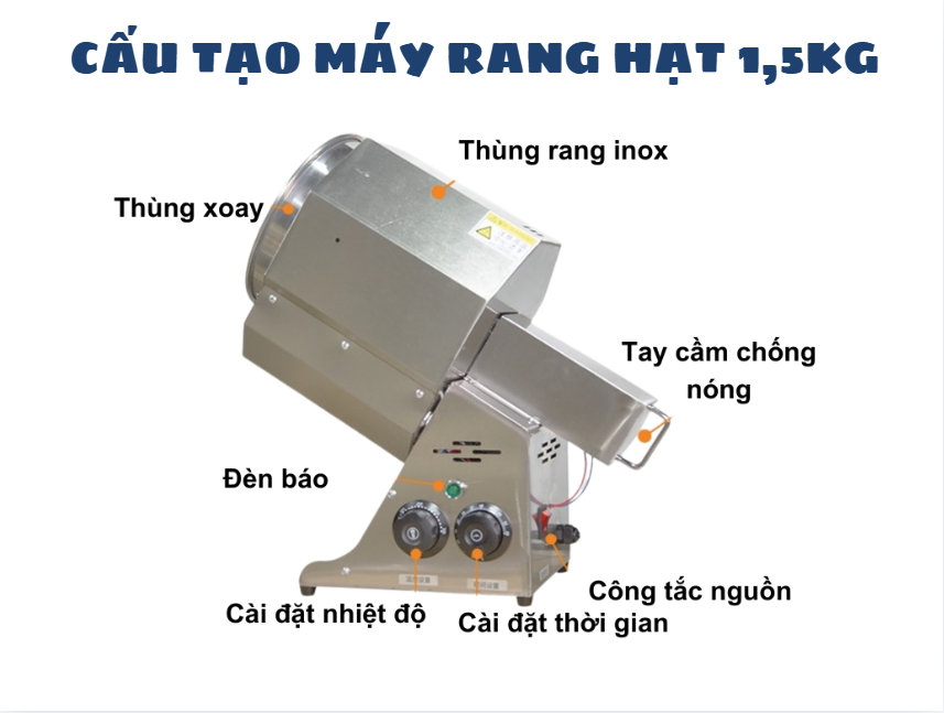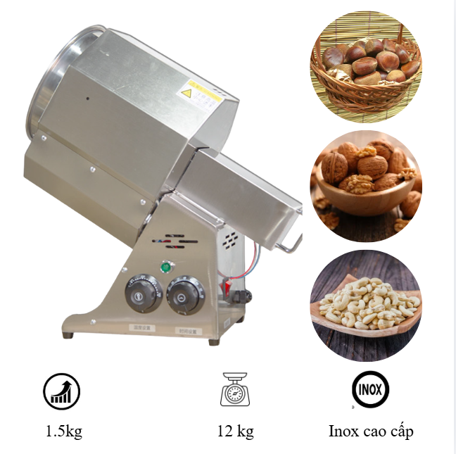 Hạt dẻ rang nóng là món ăn vặt được nhiều người yêu thích nhờ hương vị thơm bùi, béo ngậy và giàu dinh dưỡng. Tuy nhiên, nếu rang bằng chảo thông thường rất dễ bị cháy hoặc hạt chín không đều. Vì vậy, máy rang hạt dẻ mini 1.5kg ra đời nhằm giúp các gia đình và cửa hàng nhỏ có thể rang hạt nhanh chóng, tiện lợi và giữ được hương vị thơm ngon tự nhiên.