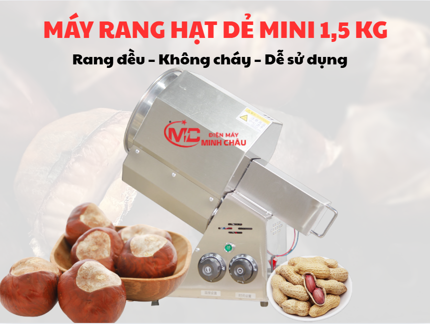 Với thiết kế nhỏ gọn, dễ sử dụng và năng suất phù hợp, máy rang hạt dẻ mini đang trở thành thiết bị được nhiều người lựa chọn để rang hạt tại nhà hoặc kinh doanh nhỏ lẻ.