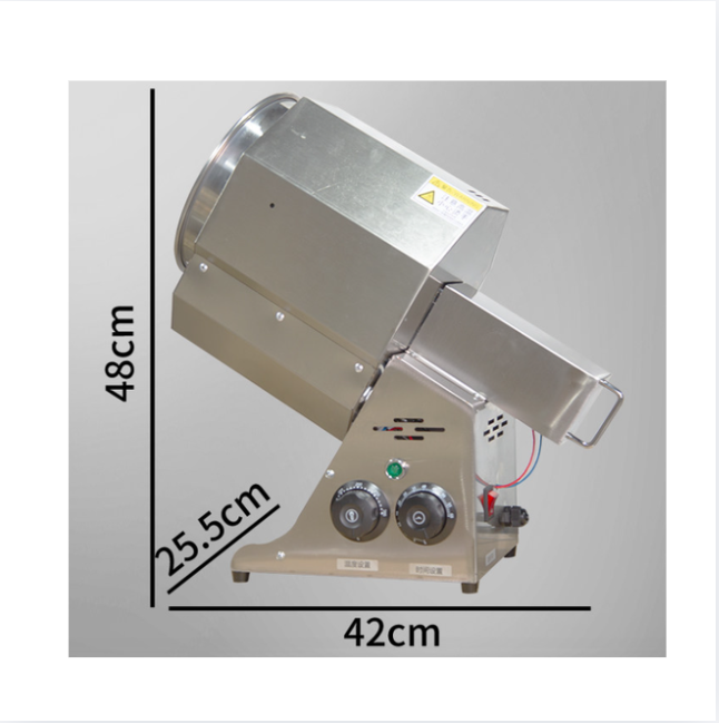 Máy có thể sử dụng nguồn nhiệt từ điện hoặc gas, giúp làm nóng lồng rang và làm chín hạt