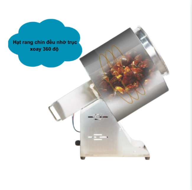 Máy được trang bị lồng rang quay tự động, giúp đảo hạt liên tục trong quá trình rang. Nhờ đó, hạt dẻ được làm chín đều từ trong ra ngoài.