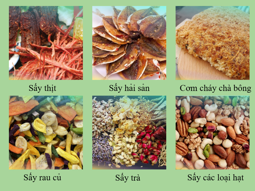Một số sản phẩm phổ biến có thể sấy bằng máy: