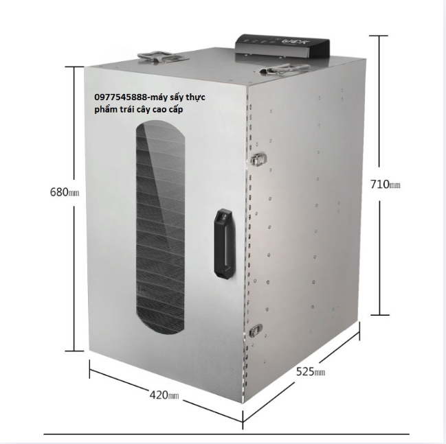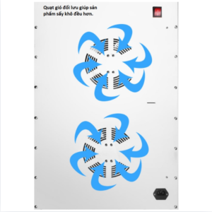 Với cấu hình 20 khay rộng rãi, hệ thống quạt đối lưu mạnh và buồng sấy kín giữ nhiệt tốt, máy đáp ứng nhu cầu sản xuất liên tục với sản lượng lớn mỗi ngày.