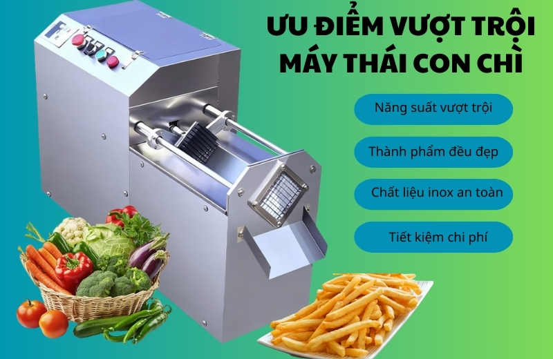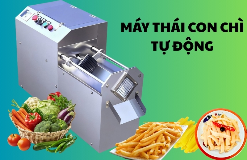 Máy thái con chì (hay máy thái sợi vuông) là thiết bị chuyên dụng để cắt các loại rau củ quả thành những thanh dài, vuông vức. Tên gọi “con chì” xuất phát từ hình dáng thành phẩm giống như những viên chì lưới hoặc thanh vuông dài đều tắp.