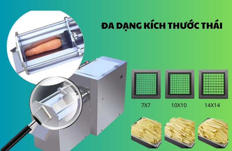 7x7mm: Thái sợi nhỏ (làm đồ chua, salad).