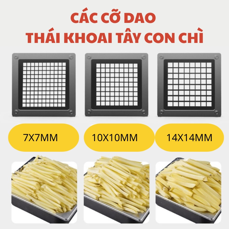 10x10mm: Kích thước tiêu chuẩn cho khoai tây chiên.