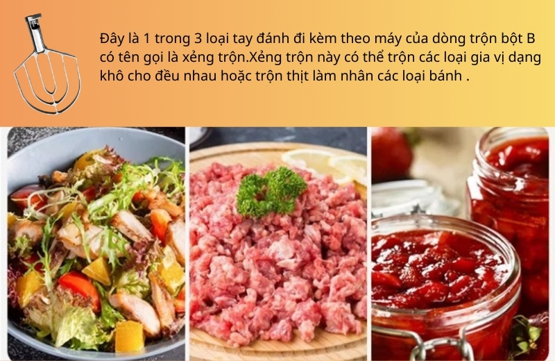 Càng chân vịt hay xẻng trộn (trộn nhân).Đây là một trong ba loại tay đánh đi kèm theo máy của dòng trộn bột B.Càng chân vịt có thể trộn các loại gia vị dạng khô cho đều nhau hoặc trộn các loại thịt làm nhân bánh.