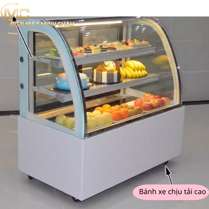 Tủ bánh kem 3 tầng 1m2 kính cong thiết kế sang trọng