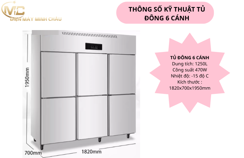| Tiêu chí | Tủ đông 6 cánh 1200L |