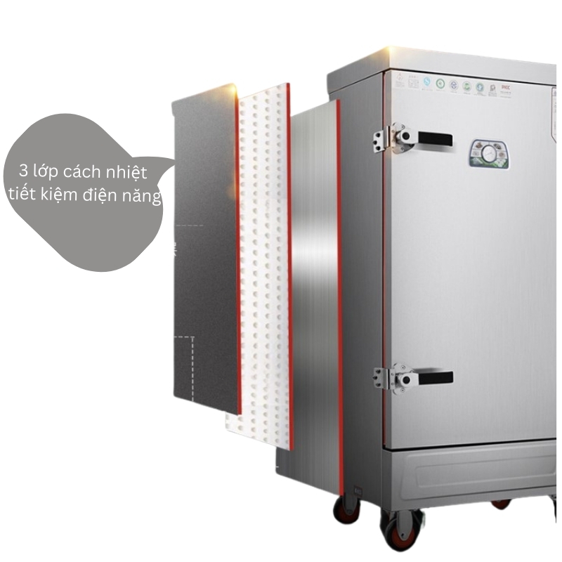 👉 Thành tủ được thiết kế 2 lớp inox dày, ở giữa là foam cách nhiệt, giúp: