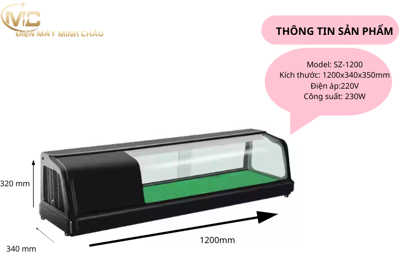 Thông số kỹ thuật tủ sushi 1.5m