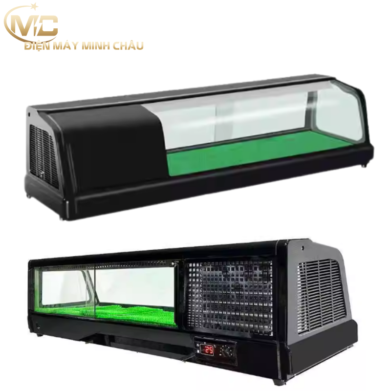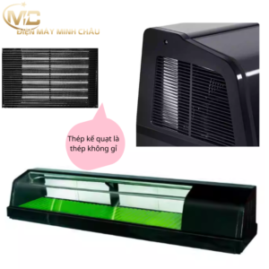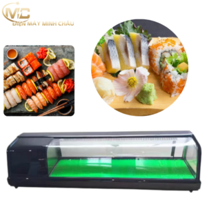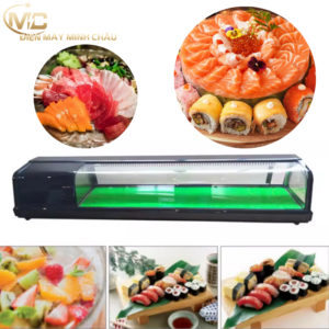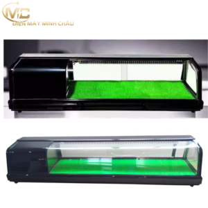 Tủ trưng bày sushi 1m5 là dòng tủ chuyên dụng dành cho nhà hàng Nhật, quán sushi – sashimi, buffet hải sản quy mô vừa và lớn.Với chiều dài 150cm, tủ cho không gian trưng bày rộng, giúp bày được nhiều khay cá hồi, cá ngừ, sashimi, sushi cuộn… mà vẫn giữ nhiệt ổn định, đảm bảo độ tươi ngon và an toàn thực phẩm.
