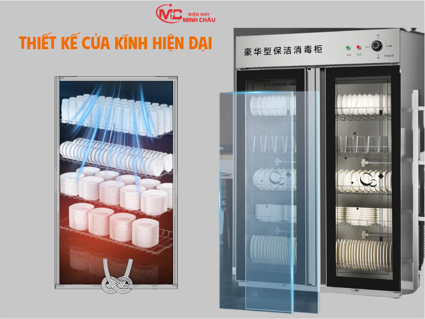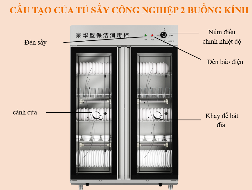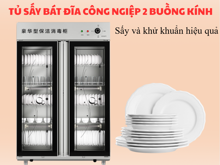 Tủ Sấy Bát Đĩa Công Nghiệp 2 Buồng Cánh Kính