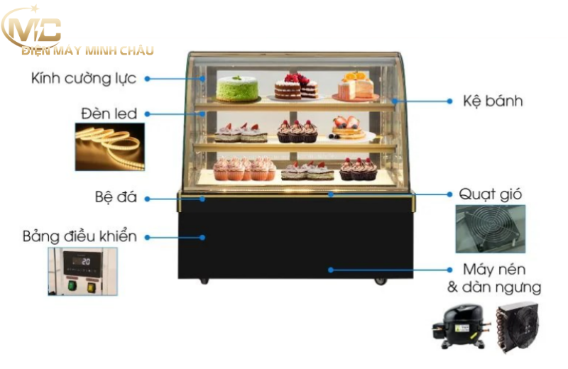 Cách sử dụng tủ bánh kem 3 tầng 90cm kính cong