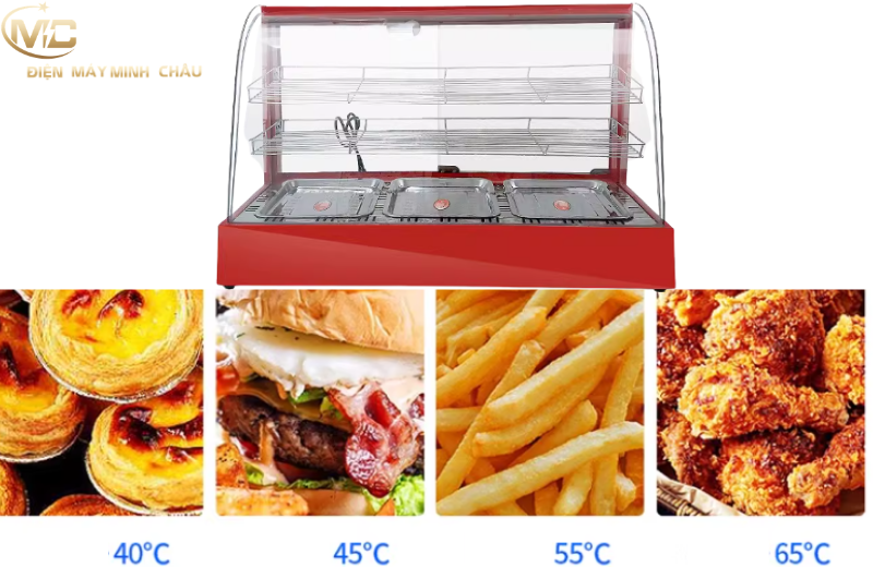 Tủ trưng bày giữ nóng kính cong là thiết bị vô cùng hữu ích đối với các cửa hàng kinh doanh đồ ăn nhanh và thực phẩm nóng